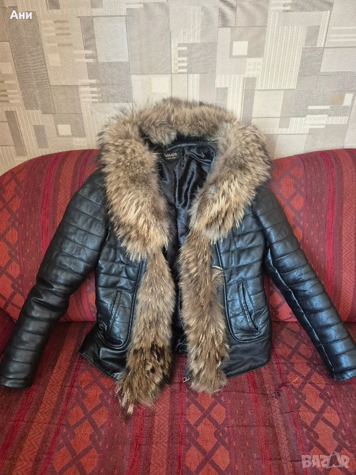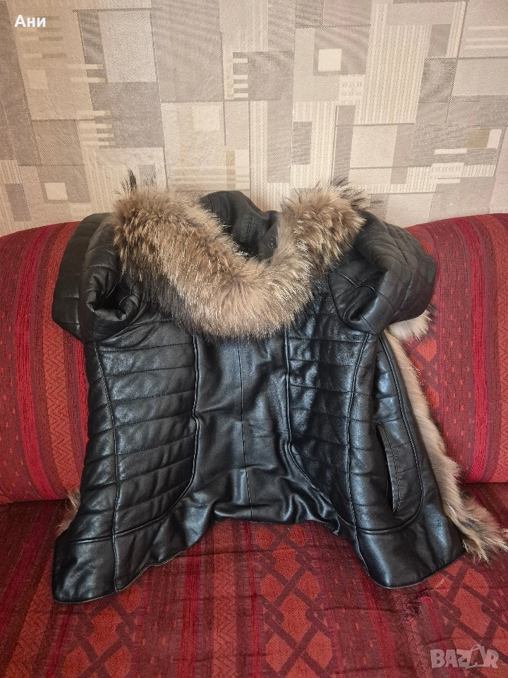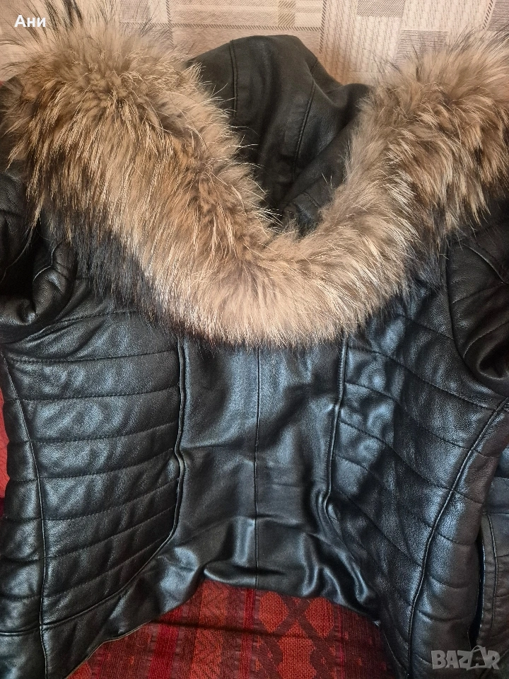 Дамско яке естествена кожа яка и качулка лисица размер L → Обява 53519955