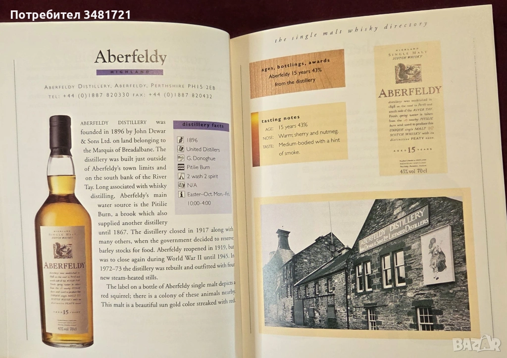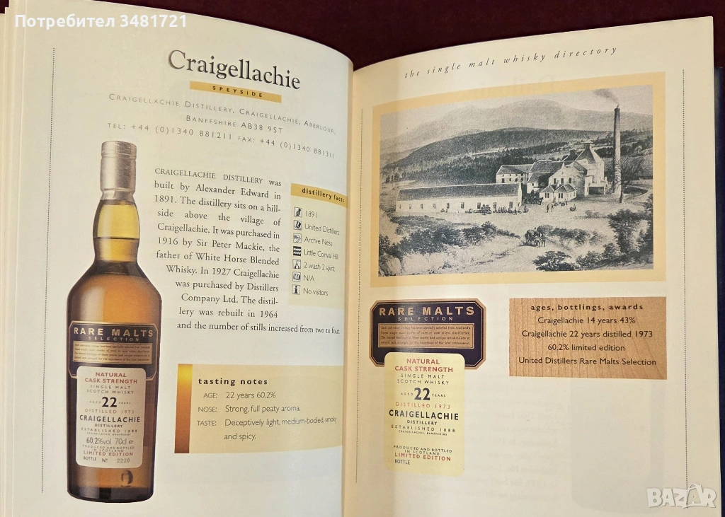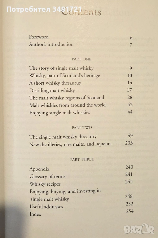 Богат справочник за над 100 вида уискита, включително много редки или малко известни такива, детайлно представени в текст, снимки и илюстрации.