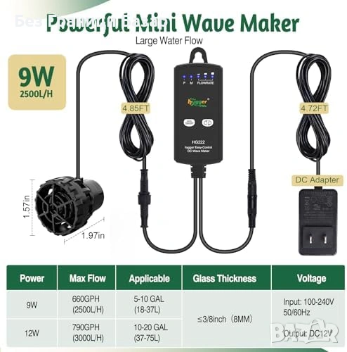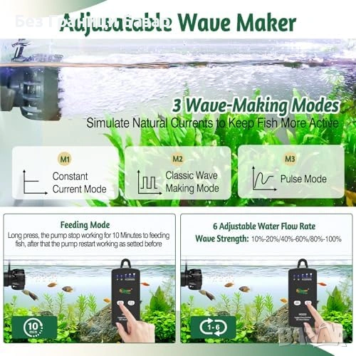 Нова помпа 9W вълногенератор за аквариум 2500L/H + контролер 3 режима