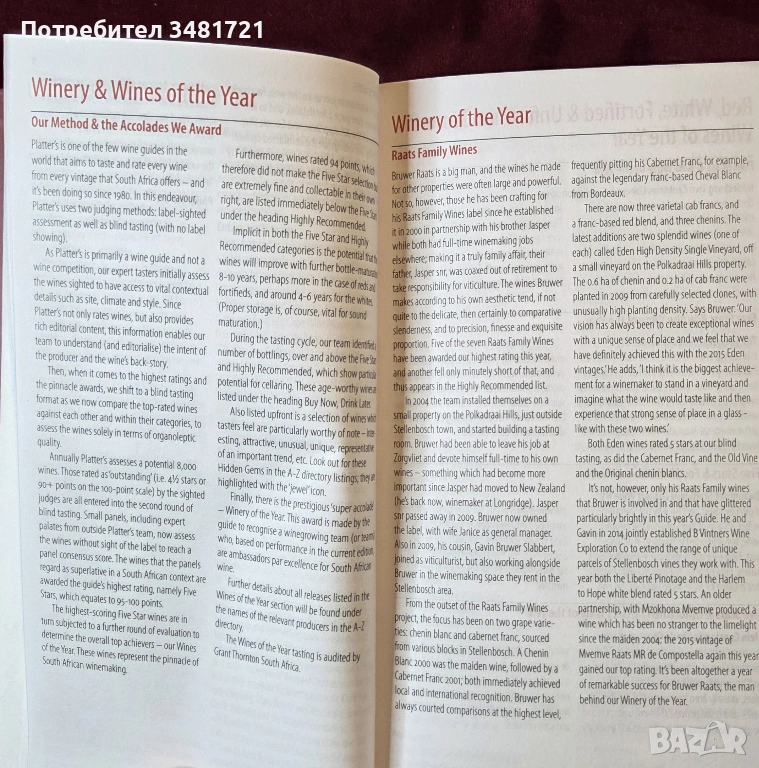 Над 8000 вида вина, над 900 производителя. Победители в различни категории, вина за консумиране и такива за инвестиция в бъдещето, специфики на различните региони, лозя и вина. Всичко това - представено в компактен формат на страниците на този справочник.