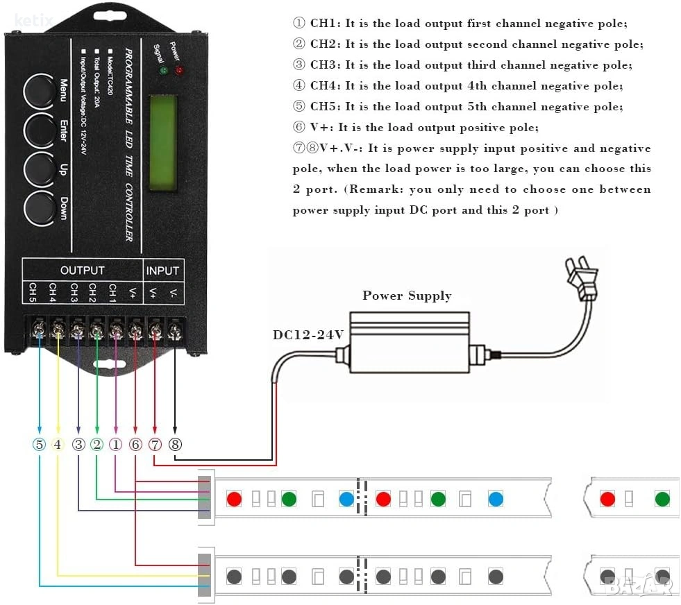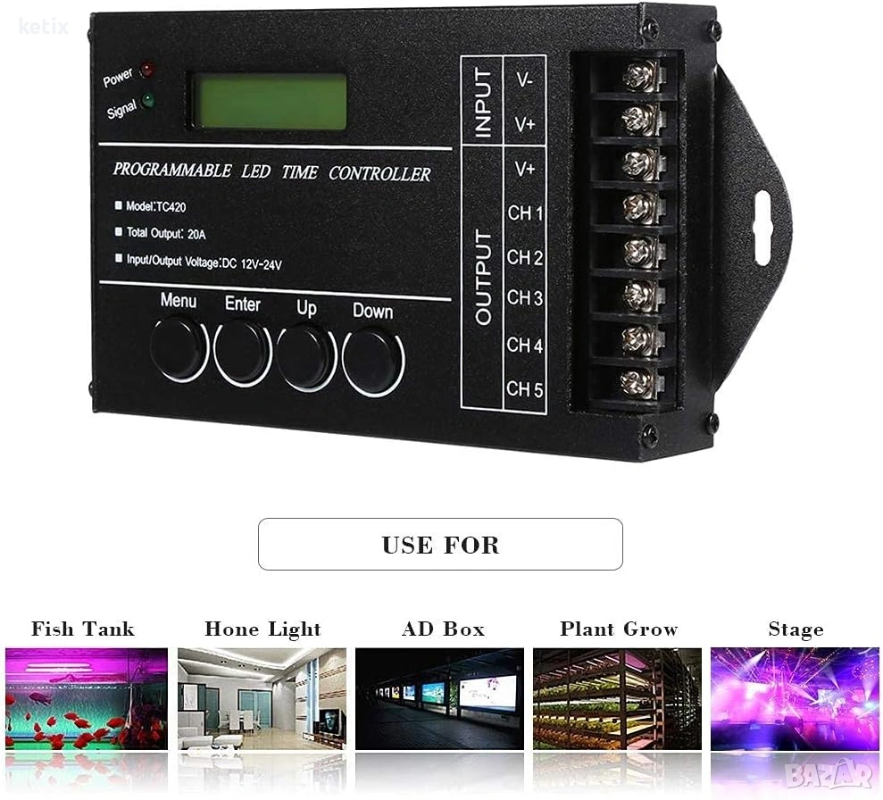 ВИСОКА СЪВМЕСТИМОСТ - Поддържа 1-5 канален изход за RGBW/RGBW/двуцветно/едноцветно LED осветление. С 1-инчов LED дисплей.