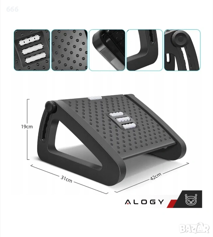 Ергономична поставка за бюро, Alogy, 6 регулируеми височини, масаж, черна, 42x31x19см