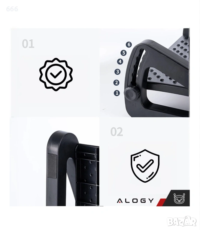 ✅ 6 регулируеми височини – позволява ви да регулирате подходящата височина и ъгъл от 25° до 75°.