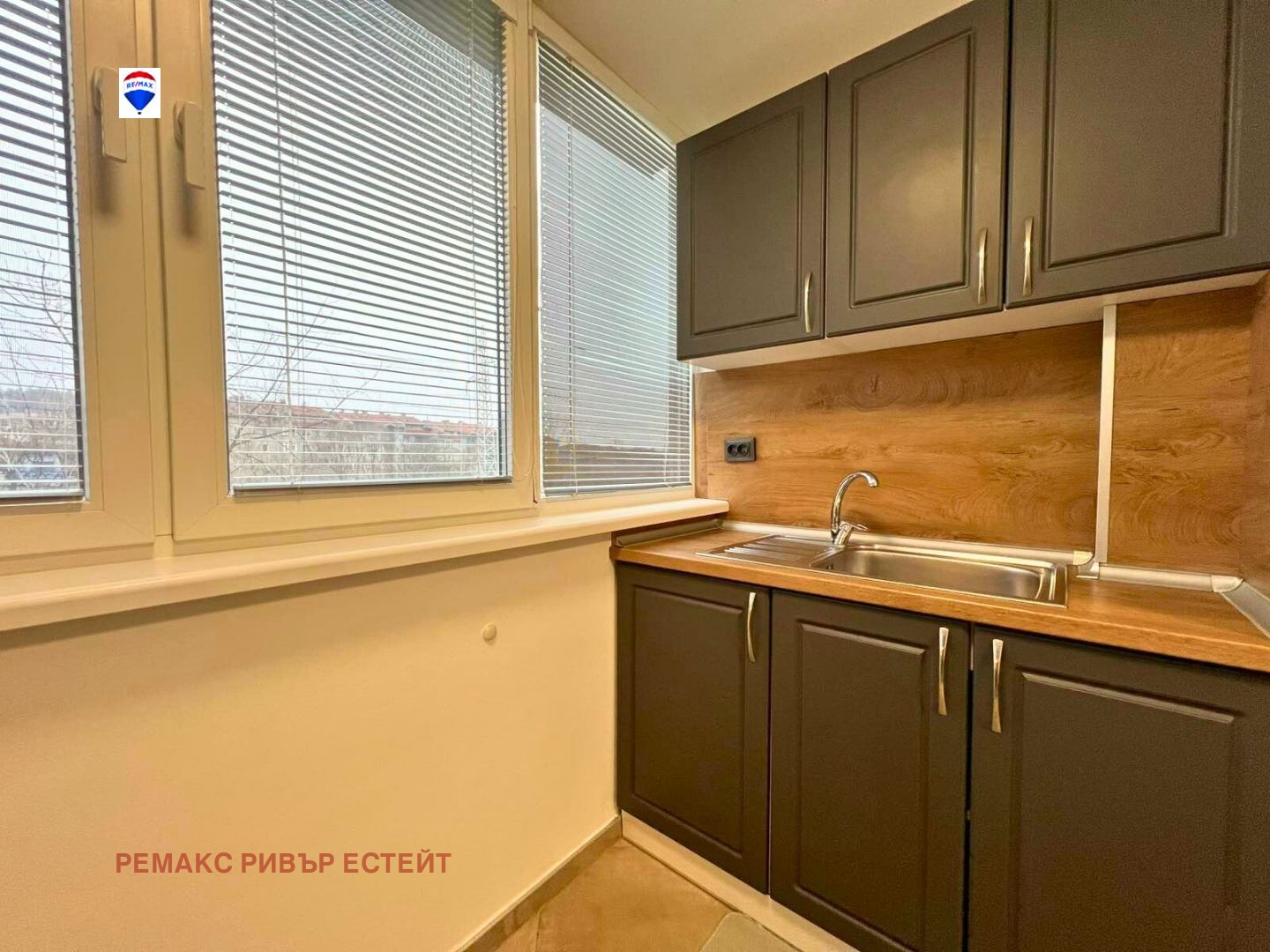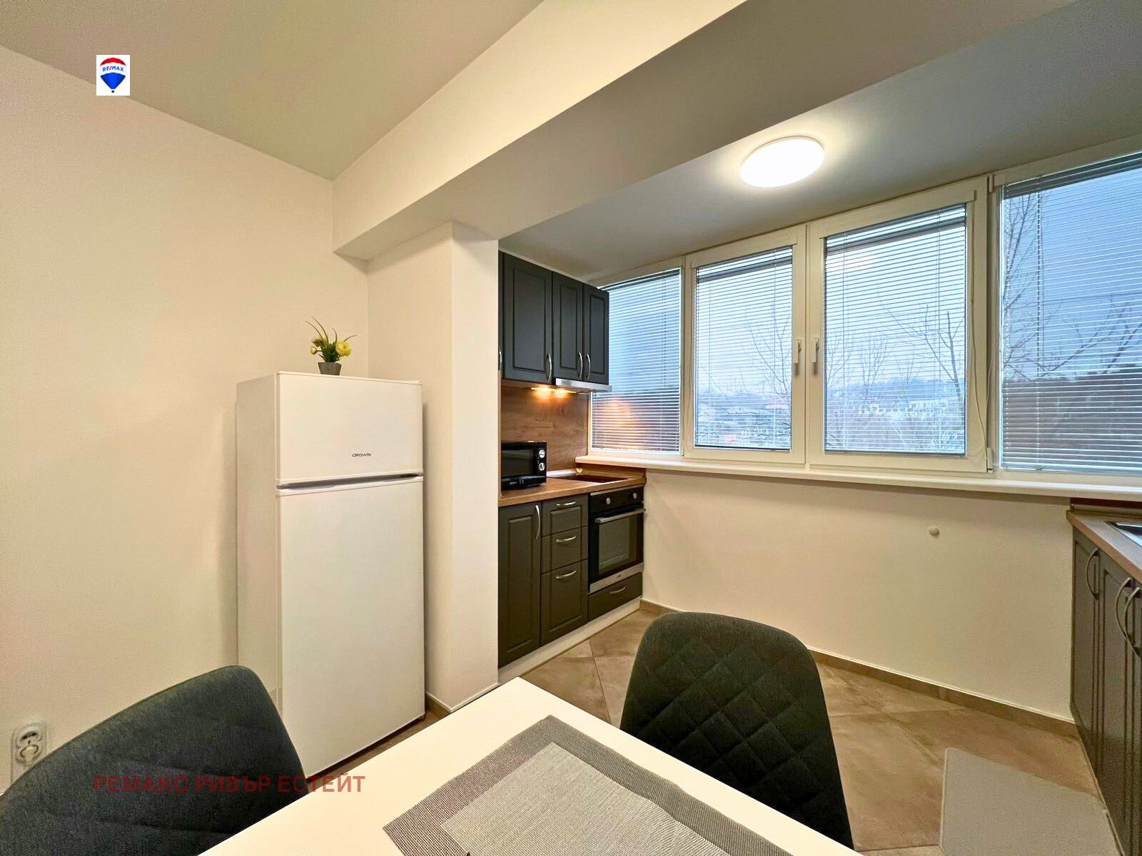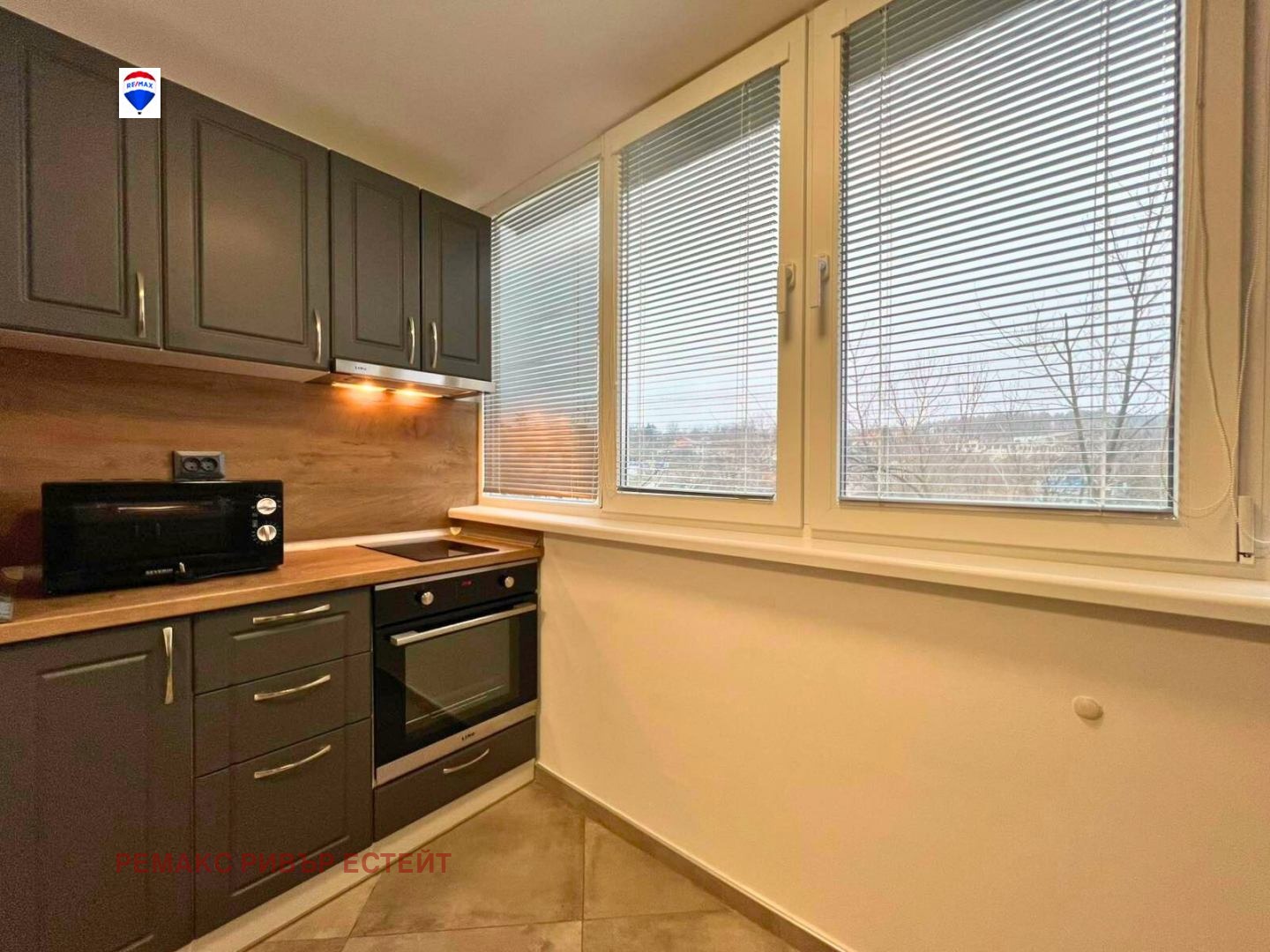 - Кухненски бокс към всекидневната, оборудван с вградена фурна, котлони, абсорбатор, хладилник и микровълнова фурна;