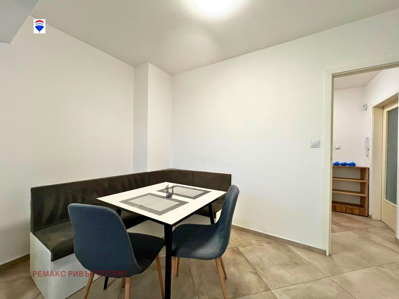 - Трапезен кът с маса за хранене, ъглов диван и столове;