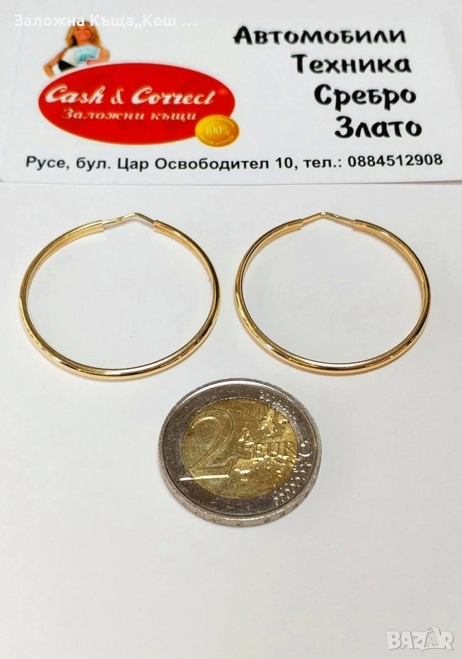 Златни обеци 14К.Тегло 2.49 гр.Цена 224 €. → Обява 53520408
