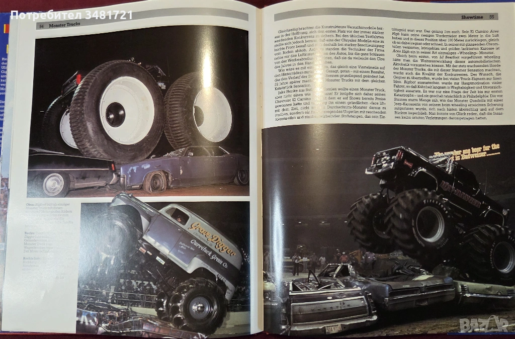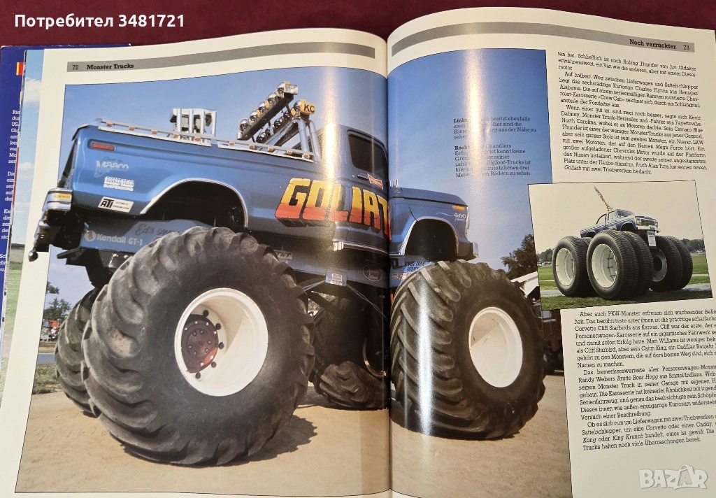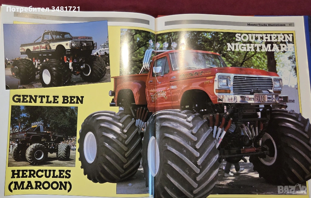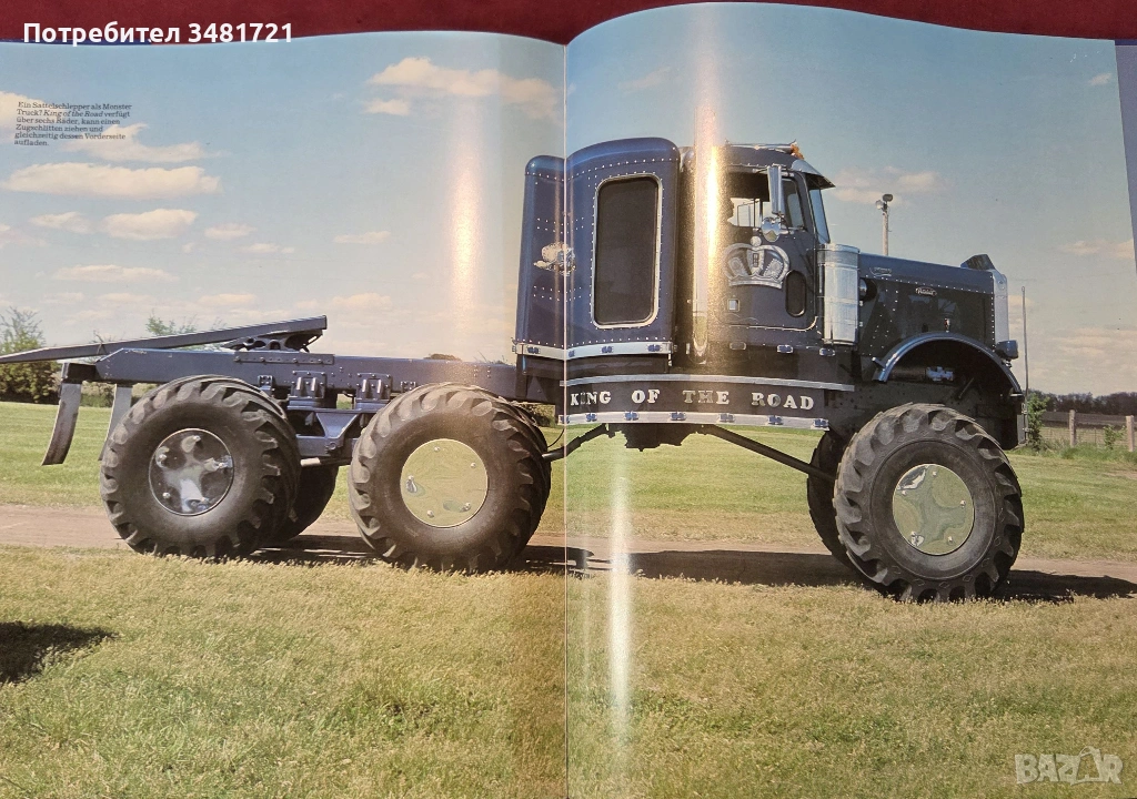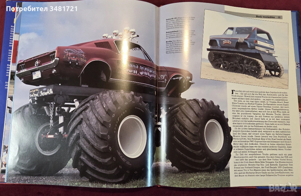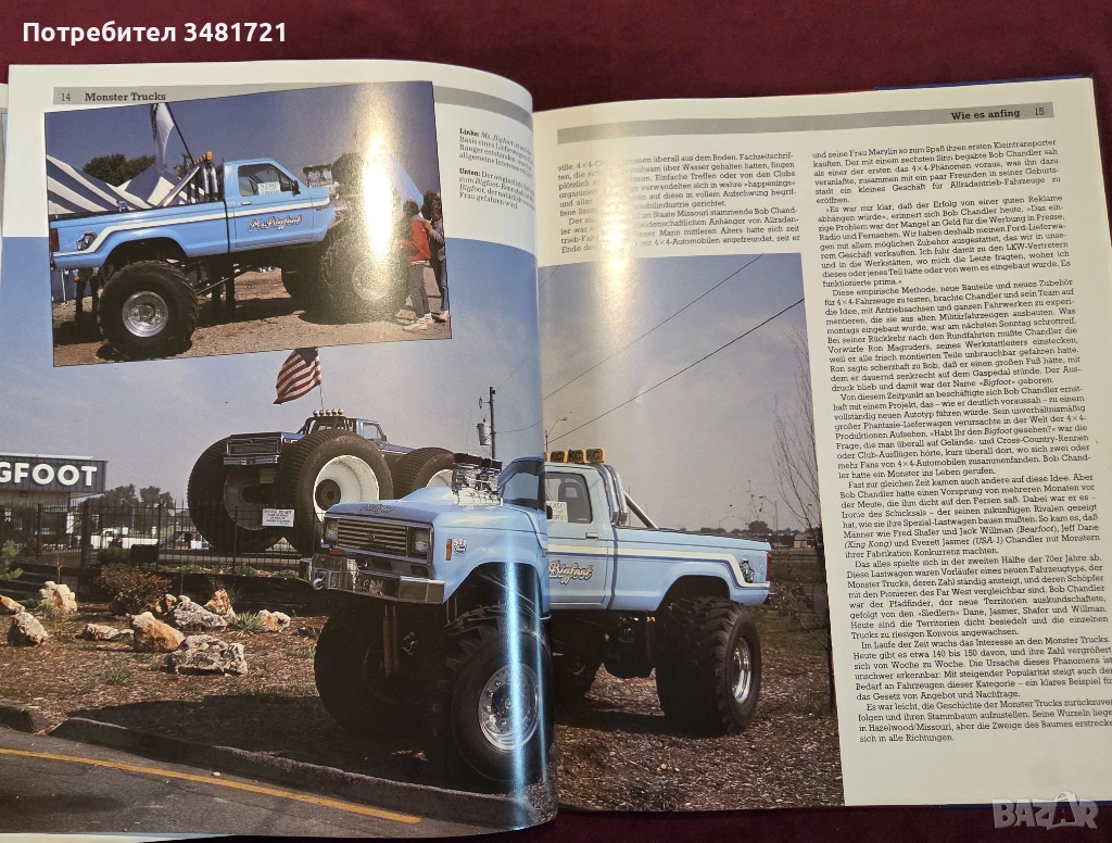 Гигантските monster trucks от САЩ - кои са те, какви двигатели ги задвижват, какво окачване имат и в кои състезания участват. Тяхната история и технически параметри, подкрепени с много снимки на King of the Road, Monster Vette, Bigfoot и т.н.