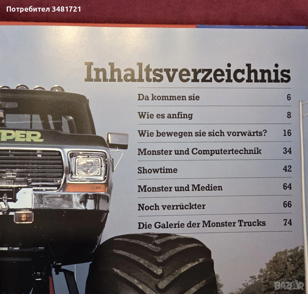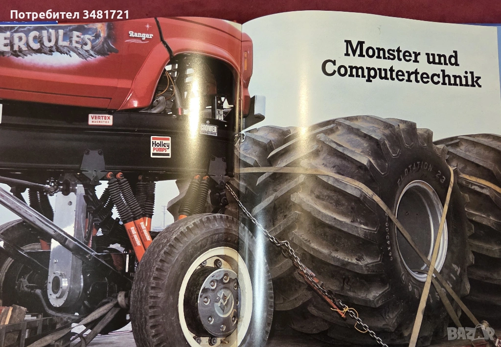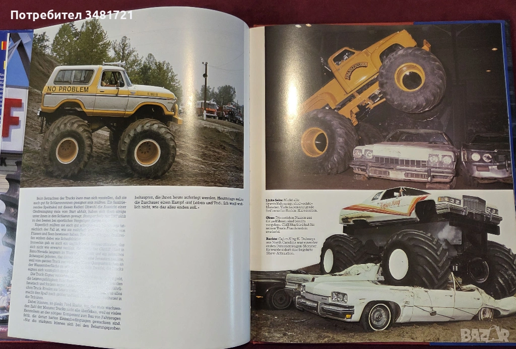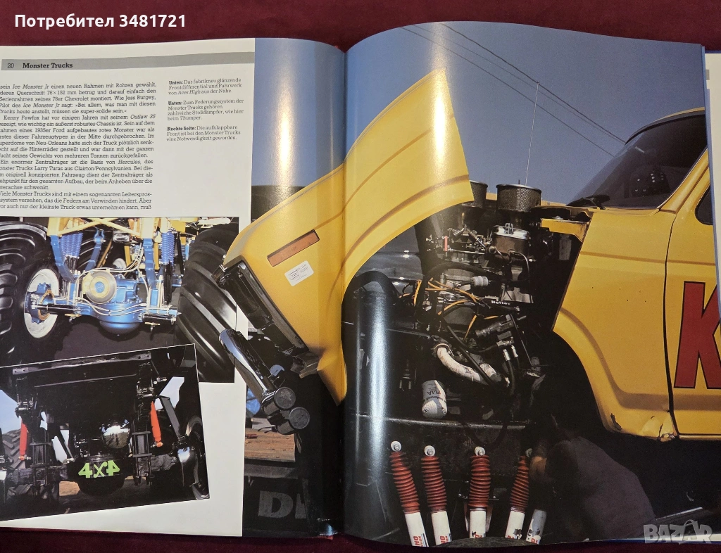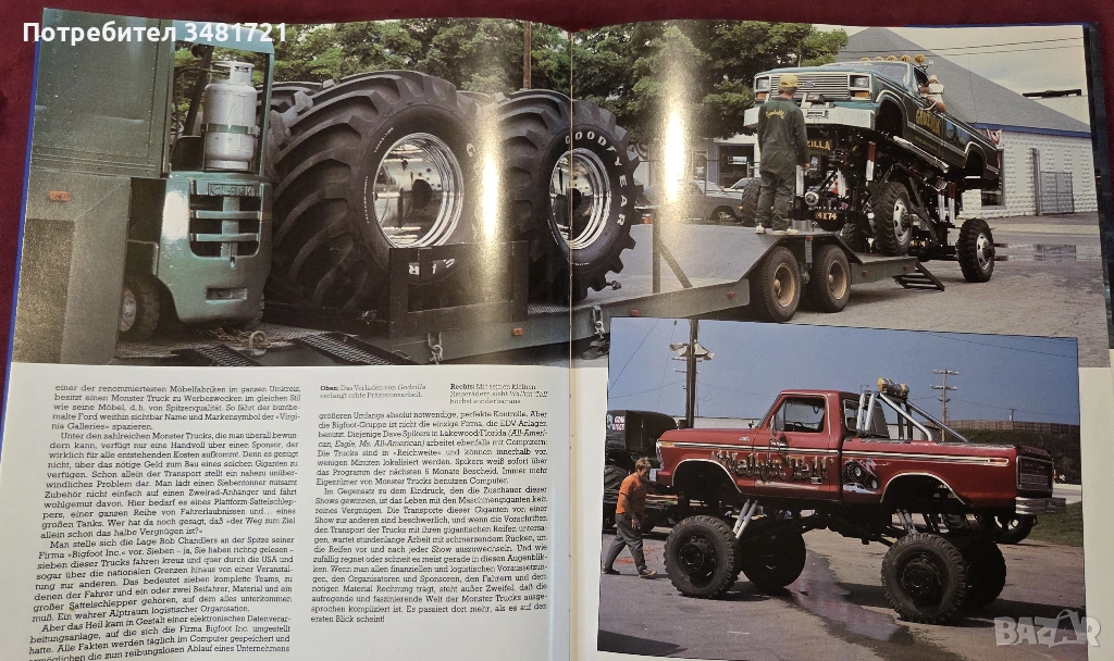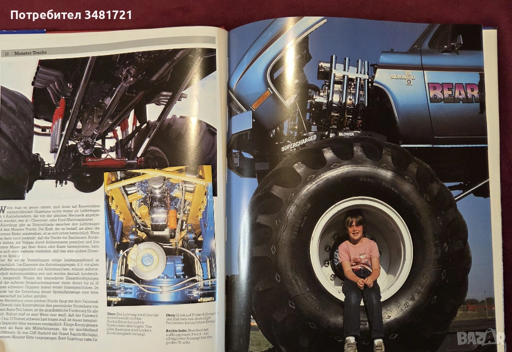 Гигантските monster trucks от САЩ - кои са те, какви двигатели ги задвижват, какво окачване имат и в кои състезания участват. Тяхната история и технически параметри, подкрепени с много снимки на King of the Road, Monster Vette, Bigfoot и т.н.
