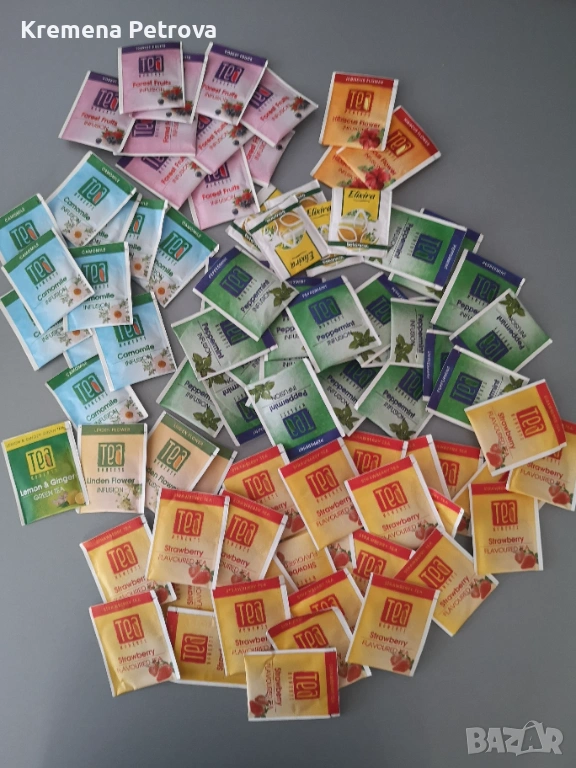 Kолекция от 85 броя пакетчета чай с различни вкусове от марката Tea Moments, произведени от "Българска чаена компания".
