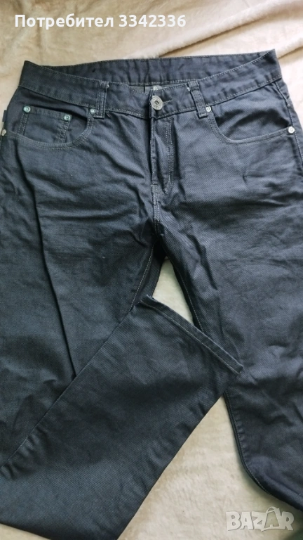 Нови тъмни мъжки дънки. Класически, изчистен модел. Размерът се вижда на снимка. Възможност за коментар на цената, при поръчка заедно с друг продукт. Възможност за доставка с куриер и лично предаване.