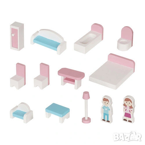 Къщичка за кукли / Детска дървена къща за кукли с мебели и осветление