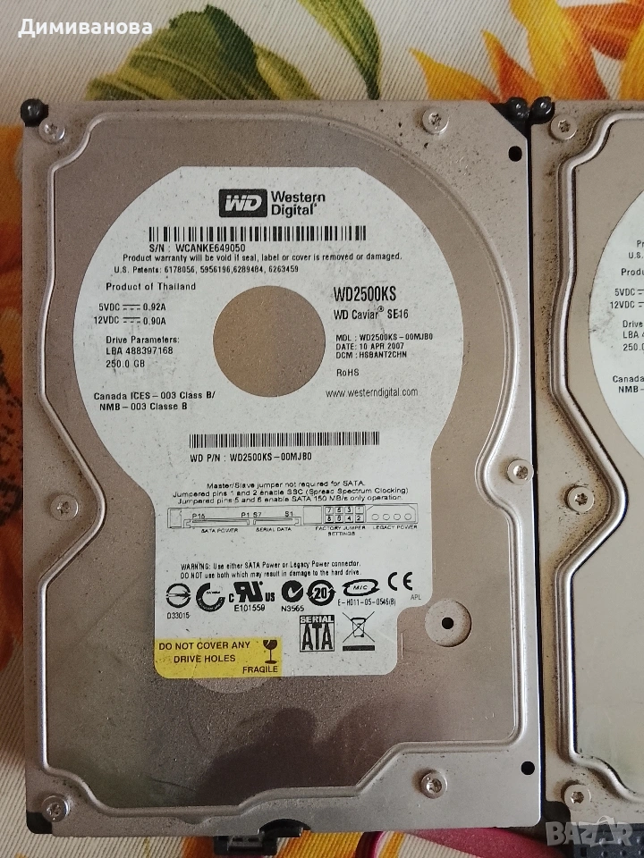 Два твърди диска WD 250GB (не тествани) → Обява 53520652