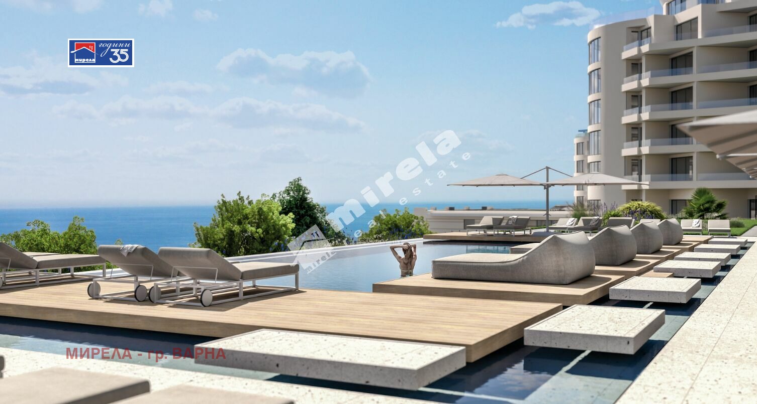 454026 Продаваме студия, двустайни, тристайни и четиристайни апартаменти в нов затворен комплекс с басейн на 2-ра линия над плаж Кабакум, в. з. Ален Мак, на 300 м от плажа - едно от най-търсените места за живеене и инвестиция в гр. Варна.