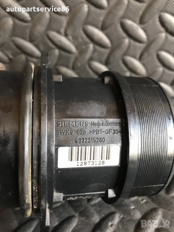 Датчик за масов въздушен поток за Citroen/Peugeot 2.2 HDi (2000-2005) 9632215280, 5WK9628, снимка 1 - Части - 53520756 Датчик за масов въздушен поток за Citroen/Peugeot 2.2 HDi (2000-2005) 9632215280, 5WK9628, снимка 2 - Части - 53520756 Датчик за масов въздушен поток за Citroen/Peugeot 2.2 HDi (2000-2005) 9632215280, 5WK9628, снимка 3 - Части - 53520756 1/3