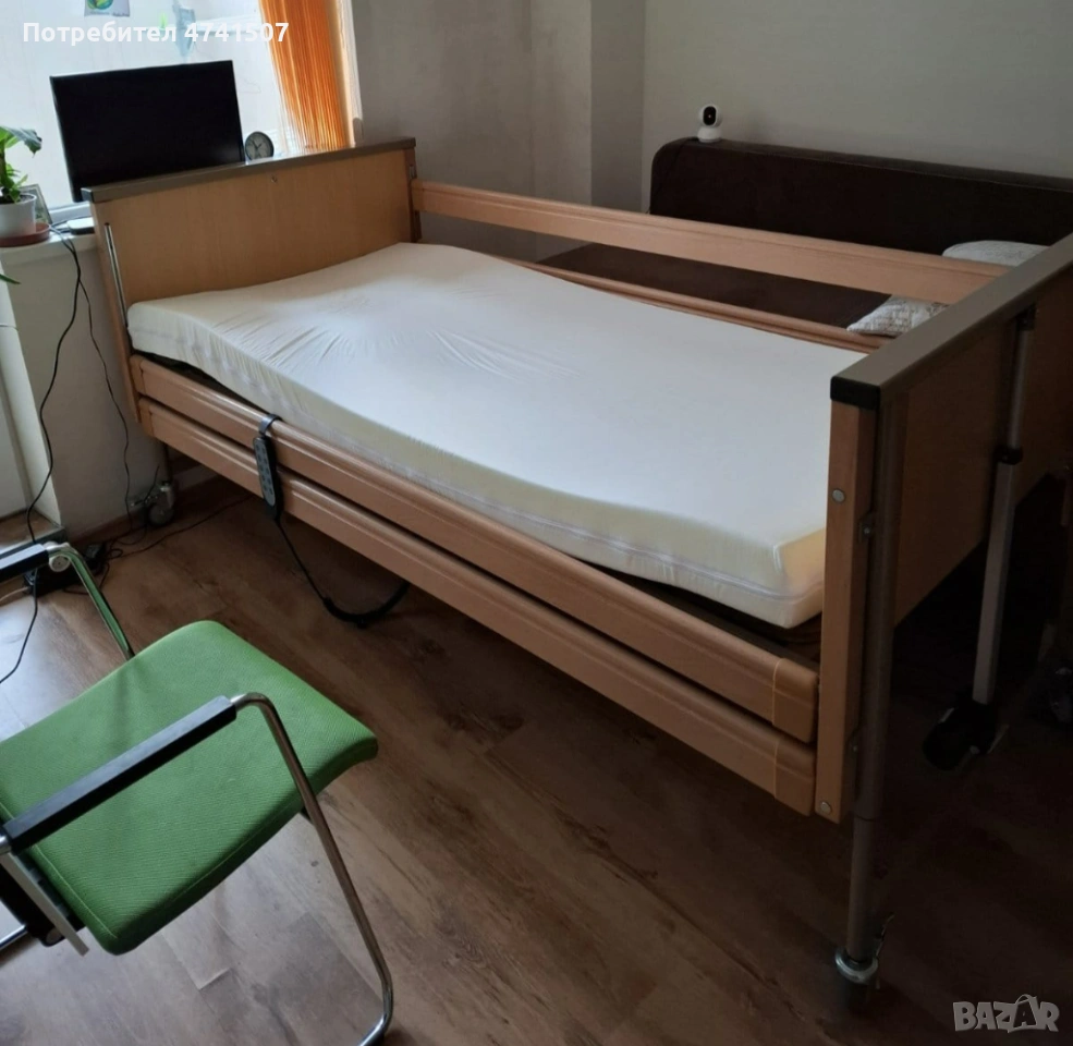 електрическо болнично легло в отлично състояние. Леглото може да се регулира по височина и наклон, което улеснява грижата за пациента.