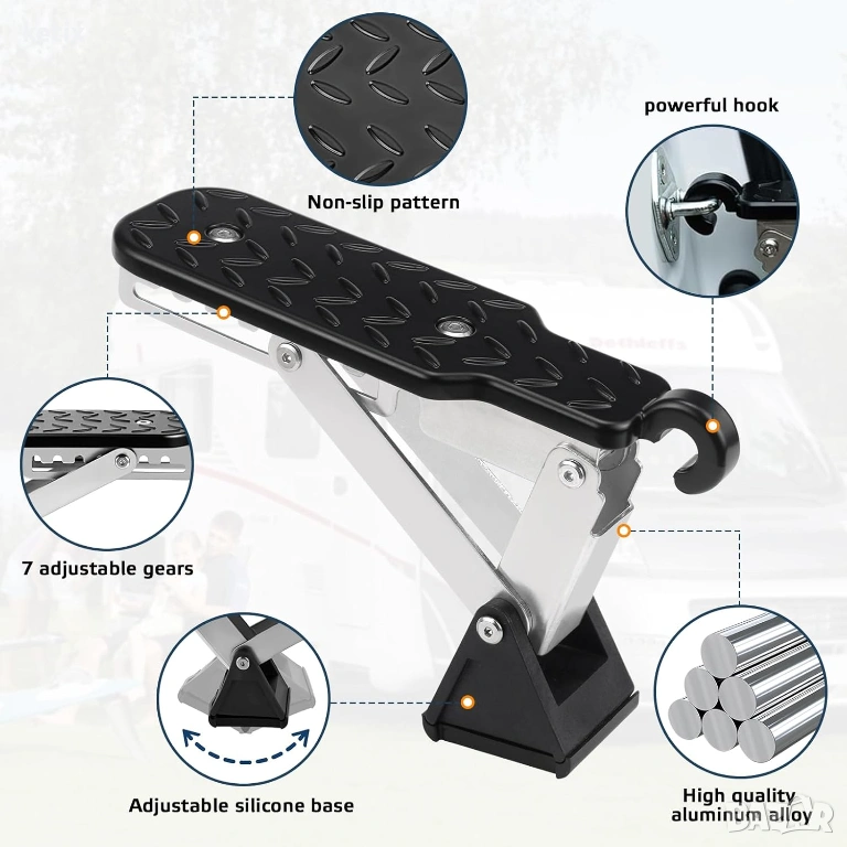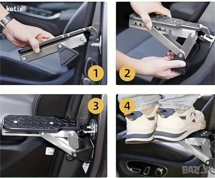 След употреба натиснете механизма за освобождаване, за да извадите стълбата лесно от рамката. След демонтаж поставете стълбата в пространството за съхранение в колата за следваща употреба. Компактният дизайн не заема много място и позволява лесно съхранение.