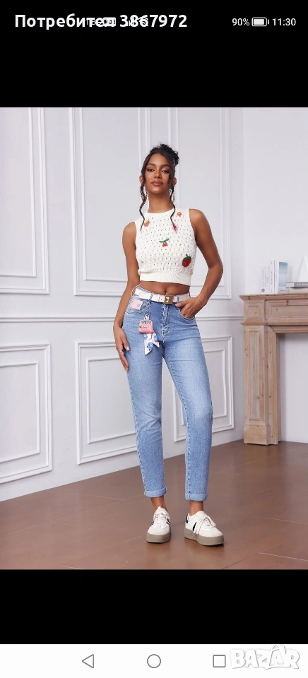 Дамски Дънки MOM FIT Denim 20€ Размери L, XL, 3XL, 4XL, 5XL Размер L Талия 37см-47см Ханш 51см-61см Размер XL Талия 39см-49см Ханш 53см-63см Размер 3XL Талия 43см-53см Ханш 57см-67см Размер 4XL Талия 47см-57см Ханш 61см-71см Размер 5XL Талия 49см-59см Ханш 63см-73см Цвят Светло Син Състав Памук 88% Полиестер 10% Еластан 2% Размерите са измерени едностранно, в свободно и опънато положение,много еластичен деним, в комплекта има подарък колан и аксесоар. Доставката със Еконт и Спиди, с преглед и тест.