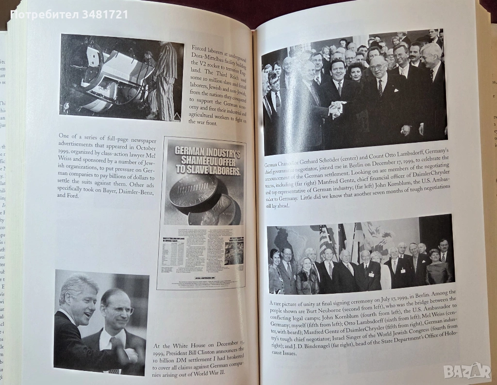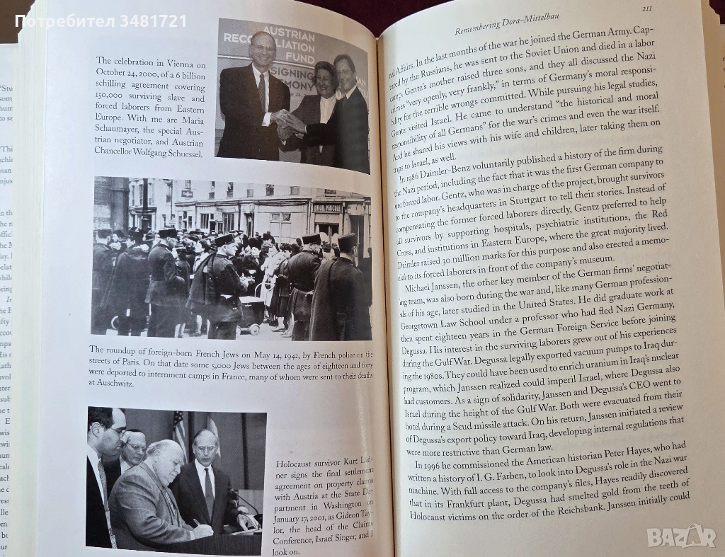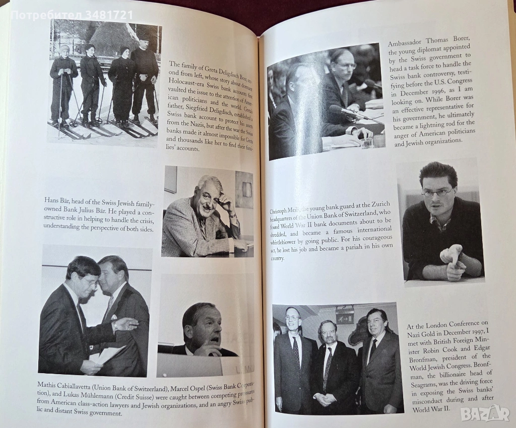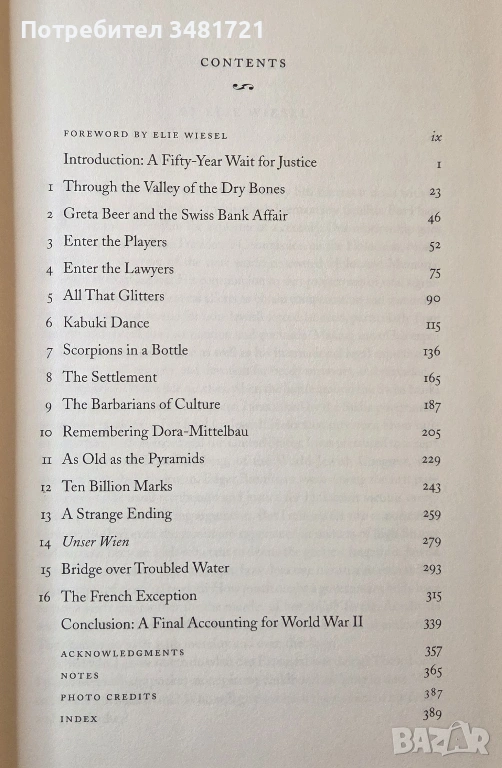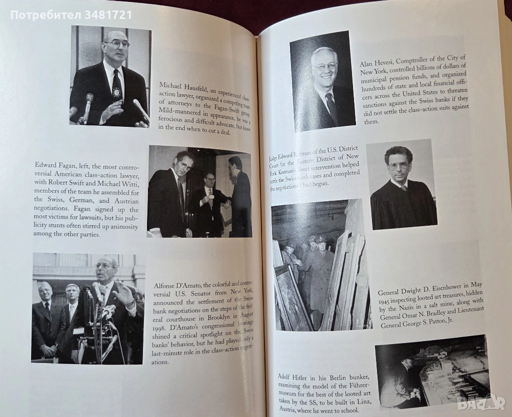 Айзенщат разказва за често разгорещените преговори със швейцарците, германците, французите, австрийците и различни еврейски организации, показвайки как морални и правни въпроси, оставяни настрана толкова дълго време, разкриват рани, които никога не са заздравели, и конфликти, които никога не са били правилно разрешени. Всяка страна реагира по свой начин: Швейцария се бори с разкритията за миналото си и дълбоко негодува от външния натиск, с който се сблъсква. Германия приема, че отново е призована да отговаря за греховете си по време на войната, този път за тези, извършени от частния сектор. Австрия е разкъсвана, виждайки се едновременно като жертва и сътрудник на Хитлер, а Франция смело поема национална отговорност за режима на Виши. А от другата страна на масата са забележителни личности: адвокати, подаващи колективни искове, някои от които алтруистични, докато други се интересуват главно от собствените си отразявания в пресата, след това от обслужването на нуждите на оцелелите, които представляват. Еврейски организации, които се борят помежду си кой най-добре представлява жертвите в стремежа им към справедливост, политици със собствени цели и амбиции, включително колоритният сенатор от Ню Йорк Алфонс Д'Амато, който превръща въпроса в свой личен кръстоносен поход, а и президентът на Съединените щати Бил Клинтън - всички те намират място на страниците на книгата в текст, подкрепен със снимков материал.