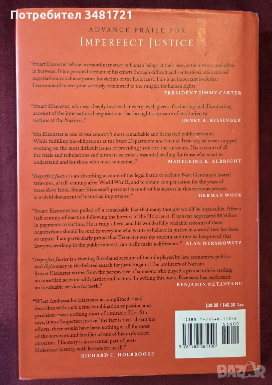 Книгата е личен разказ на Стюарт Айзенщат за това как Холокостът се превръща в политическо и дипломатическо бойно поле петдесет години след края на войната, тъй като проблемите със спящите банкови сметки, робския труд, конфискуваното имущество, разграбените произведения на изкуството и неплатените застрахователни полици разтърсват Европа и Америка. Неговата история не е история за лесни успехи или идиличен поглед върху справедливостта. По-скоро това е разкриваща хроника на преговори с високи залози, включващи ръководители на европейски правителства, разиграващи се на международна сцена с висок емоционален заряд, с подтекст за престъпления срещу човечеството и милиарди долари на масата.