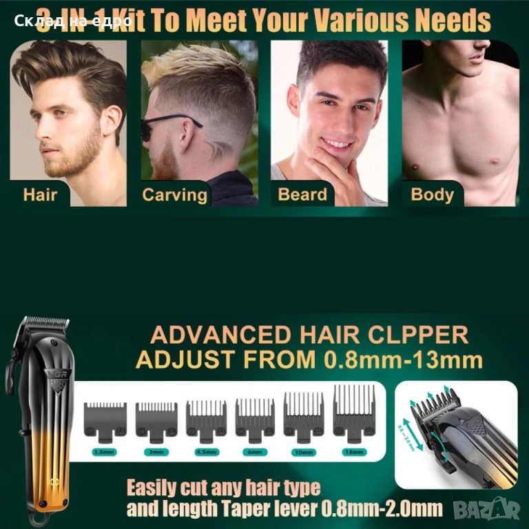 VGR V-644 – Професионален комплект за подстригване 3 в 1