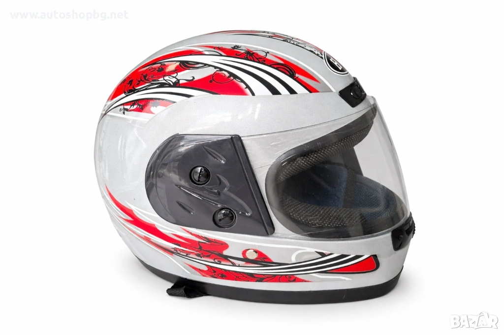 КАСКА – сива – 5162 (850) е стилна и надеждна фулфейс каска, съчетаваща модерен дизайн и високо ниво на защита. Сребристата основа с червено-черни графики придава спортен и агресивен вид, подходящ както за градско каране, така и за по-дълги пътувания.
