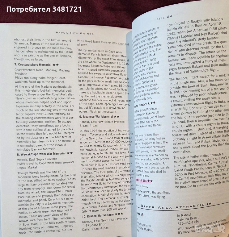 Над 500 индивидуални точки за посещение, военна история, много снимки, илюстрации и карти, туристически съвети и информация, хотели и красиви плажове, малко известни истории и места - книгата съчетава най-доброто, от което има нужда туристът, любител на военна история, желаещ да види и усети атмосферата на всички важни точки от Втората световна война в Тихия океан.