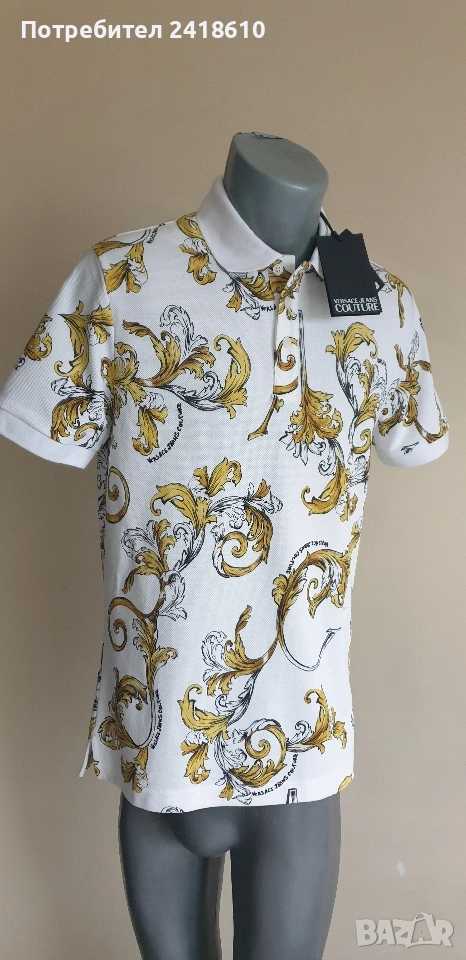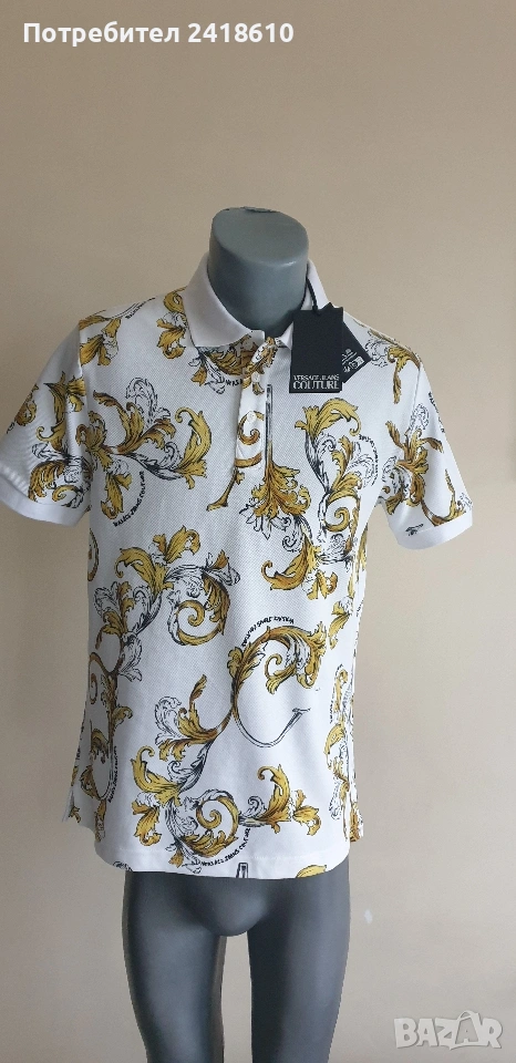 Versace Jeans Couture Cotton Slim Fit Pique Cotton Print Barocco Mens Size S НОВО! ОРИГИНАЛ! Мъжка Тениска!