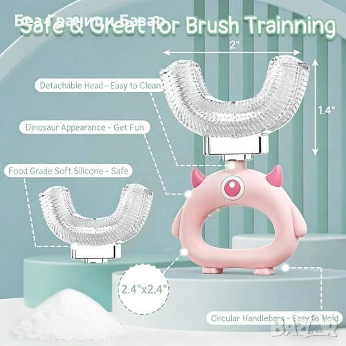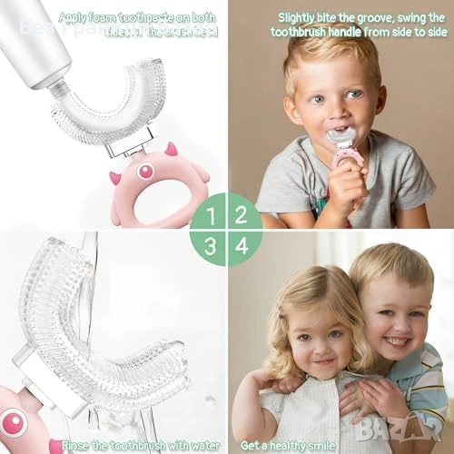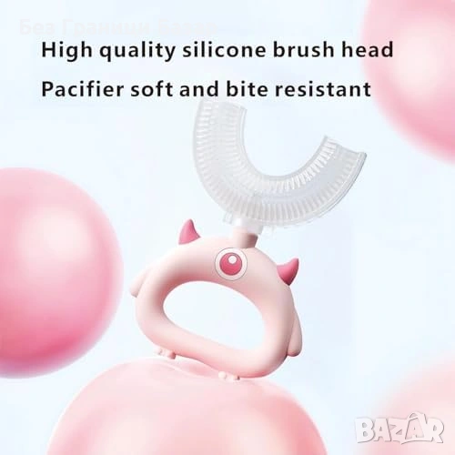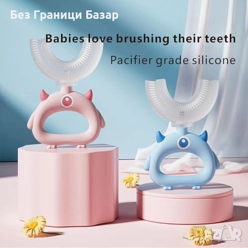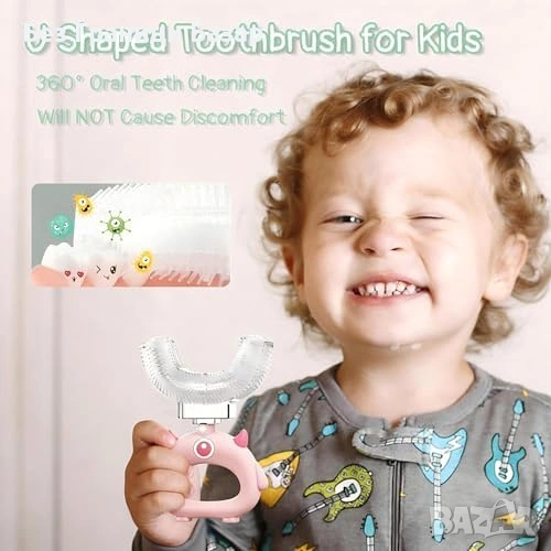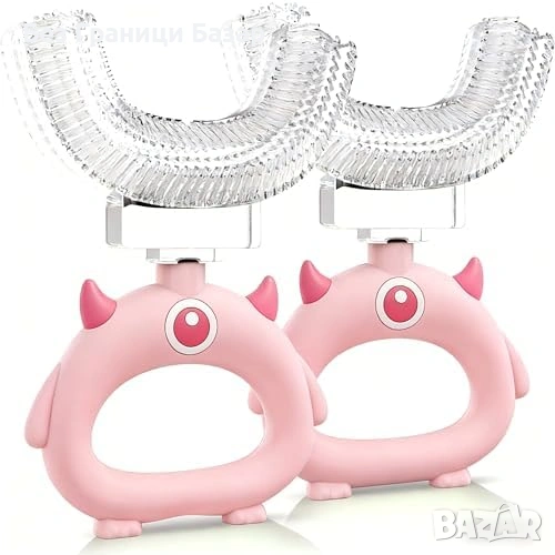 Нови 2 броя U-образна четка за зъби деца 2-12г 360° почистване силикон