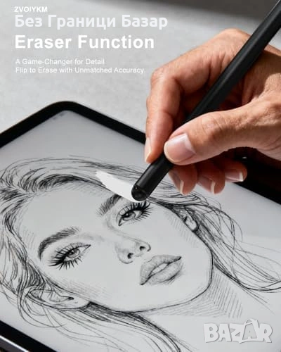 Вградена гумичка на върха (tail eraser) за бързи корекции