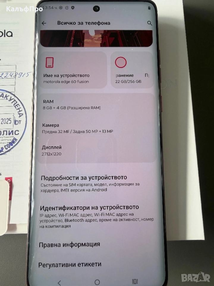 Продавам/Бартер Motorola edge 60 Fusion,цвят-pink/розов:)Телефона буквално е като НОВ без грам точица забележка по него:)Към него има кутия,кабел,игличка за сим карта,силиконов кейс(ползван),оригиналният кейс-нов неползван и гаранционна карта към Технополис!Гаранция до 15.май.2027г!RAM-8GB+4GB ,ROM-256GB!Телефона е перфектен,много хубав цвят:)