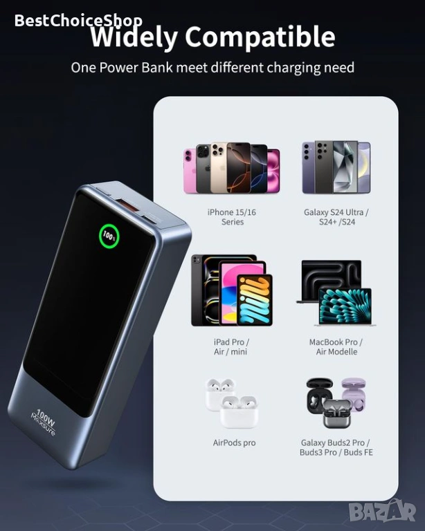 Подходяща за бързо зареждане на смартфони и дори лаптопи с USB-C захранване.