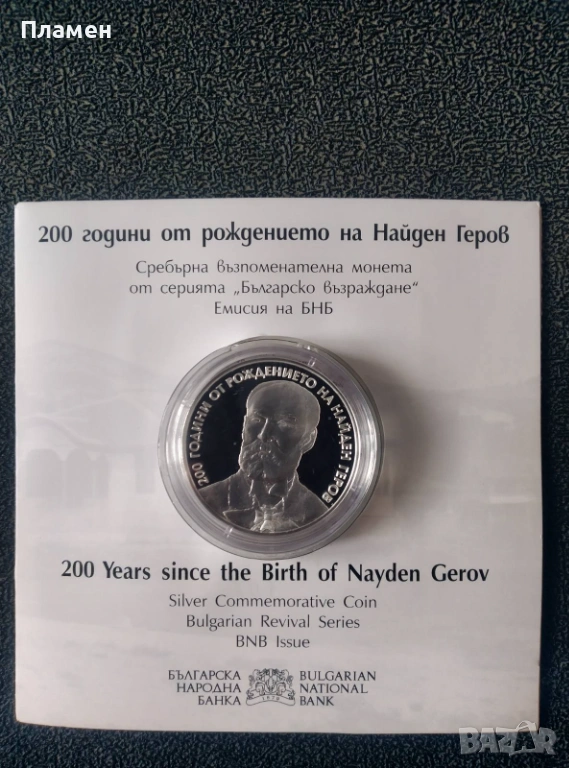 Сребърна възпоменателна монета „200 г. от рождението на Найден Геров“