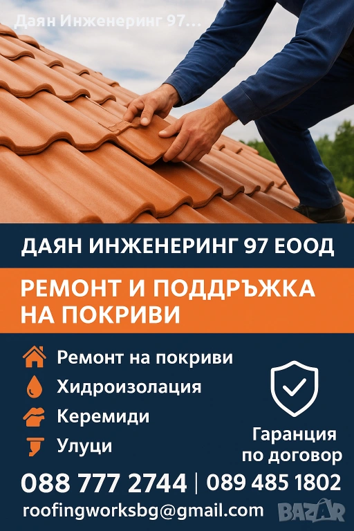 ✔️ С нас ”Даян Инжинеринг 97” ЕООД покривът ви е в сигурни ръце - качествени ремонти, които издържат на времето.