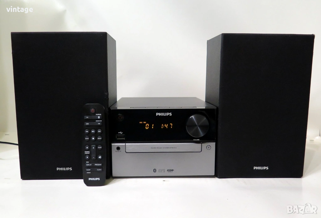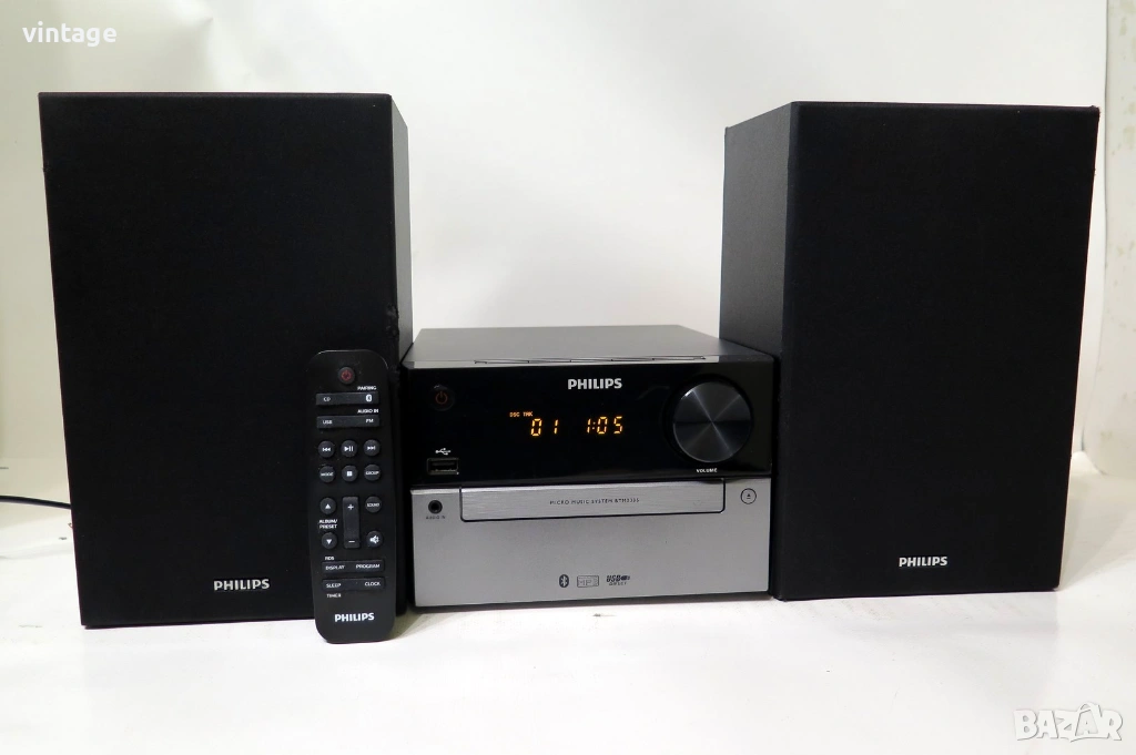 Мини стерео система, отлична технически, много добър външен вид, известни забележки по тонколоните. Цифров тунер с памет за 20 станции, CD плеър (разчита матрични и записани CD-R/CD-RW дискове, чете и МР3 формат), USB порт, Bluetooth, вход за външен източник Audio IN. Изходна мощност 2х15 вата. Налично дистанционно управление, не е оригиналното за модела, но управлява повечето функции. Приложените снимки и видео са реални!