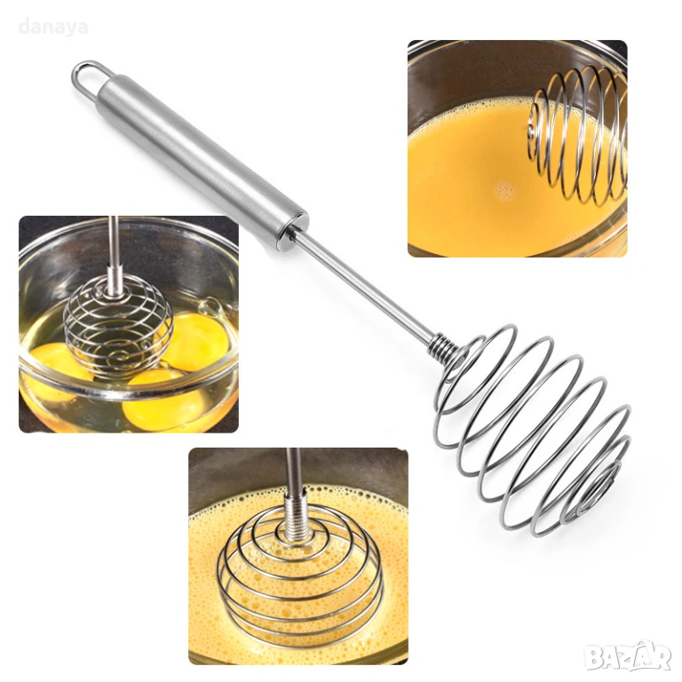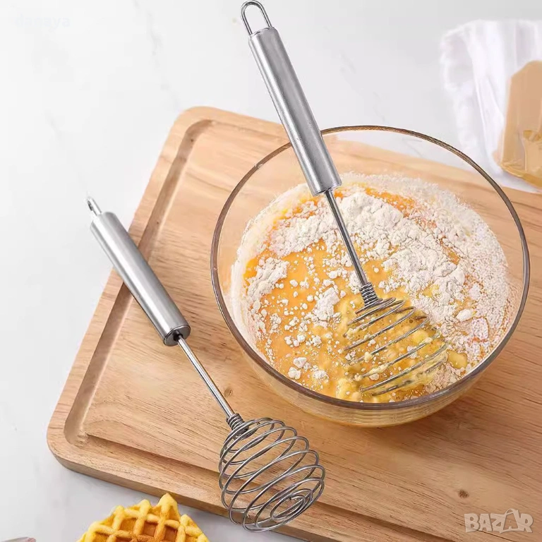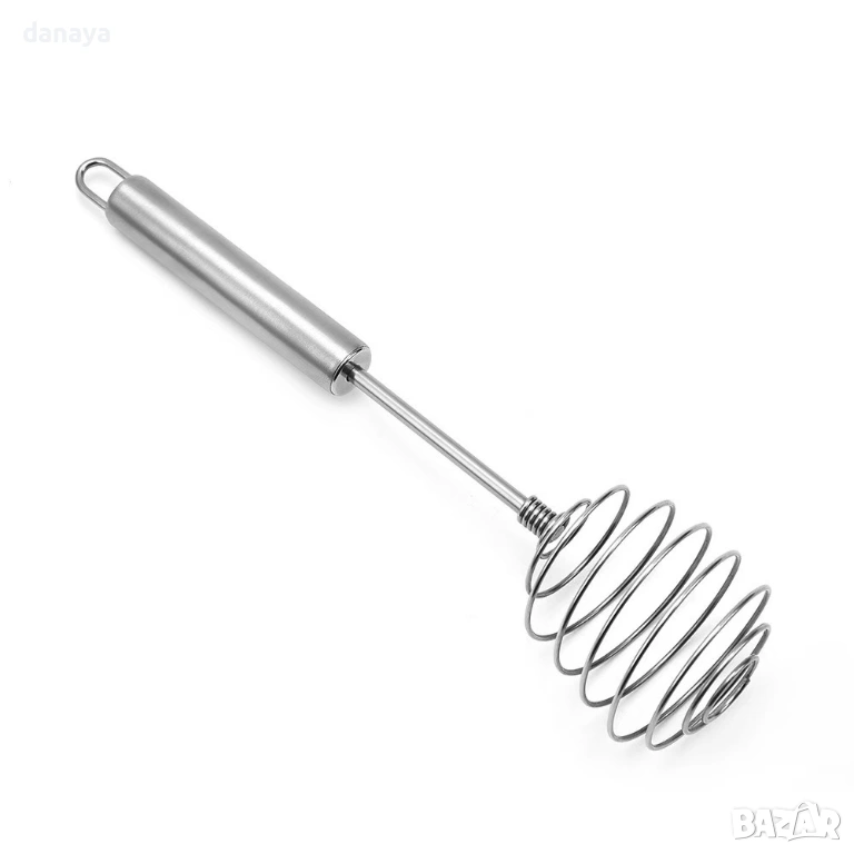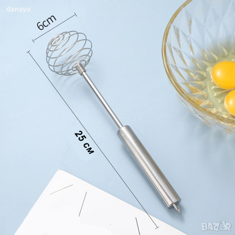 Телена бъркалка за яйца и кексови смеси. Ръчна бъркалка за яйца от неръждаема стомана е предназначена за ръчно разбиване и смесване на яйца, теста и течни смеси при готвене и печене.