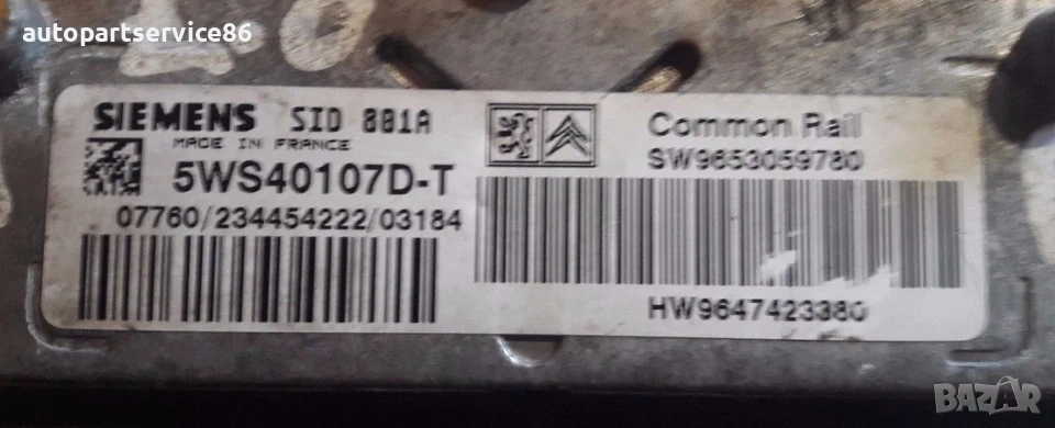 Електронен блок за управление на двигателя (ECU) за Peugeot 406 2.0 9653059780, 9647423380, 5WS40107, снимка 1 - Части - 53522391 Електронен блок за управление на двигателя (ECU) за Peugeot 406 2.0 9653059780, 9647423380, 5WS40107, снимка 2 - Части - 53522391 Електронен блок за управление на двигателя (ECU) за Peugeot 406 2.0 9653059780, 9647423380, 5WS40107, снимка 3 - Части - 53522391 1/3