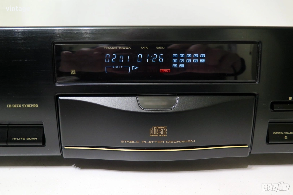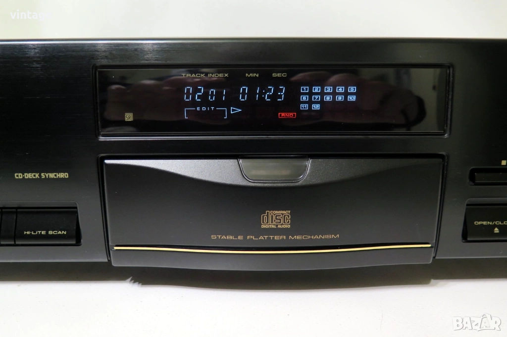 Стерео компакт диск плеър, отличен технически, много добър външен вид. Разчита матрични и записани аудио дискове. Дистанционно управление не е налично. Приложените снимки и видео са реални!
