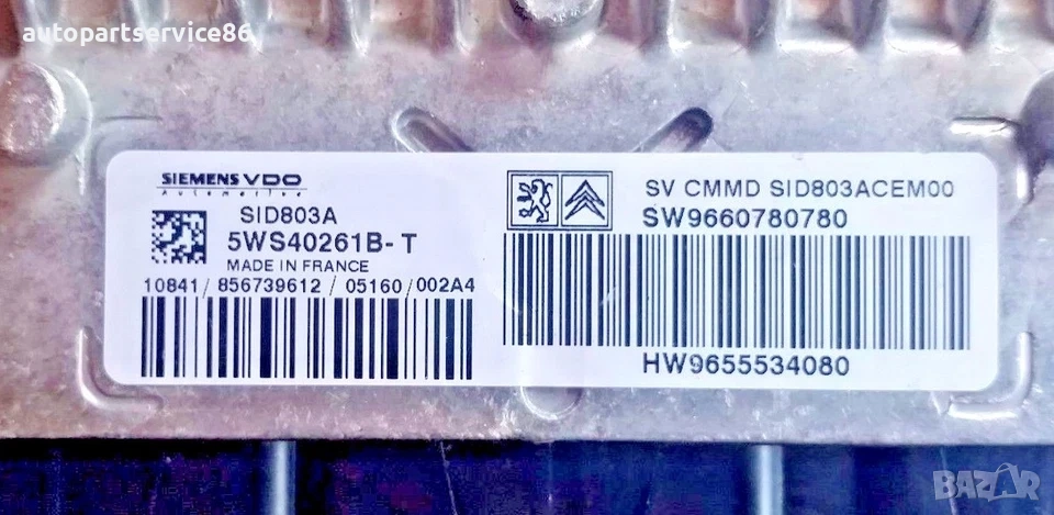 Електронен блок за управление на двигателя (ECU) за Citroen/Peugeot 5WS40261B-T, HW9655534080, снимка 1 - Части - 53522437 Електронен блок за управление на двигателя (ECU) за Citroen/Peugeot 5WS40261B-T, HW9655534080, снимка 2 - Части - 53522437 Електронен блок за управление на двигателя (ECU) за Citroen/Peugeot 5WS40261B-T, HW9655534080, снимка 3 - Части - 53522437 1/3