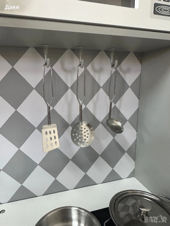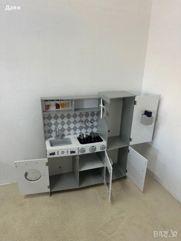 Играчката разполага с 5 затворени шкафа, 1 отворено отделение и 3 куки за окачване. Те могат да се използват за подредба на книги, играчки и продукти, което не само допринася за реализма, но и учи децата на важността на организацията и чистотата.
