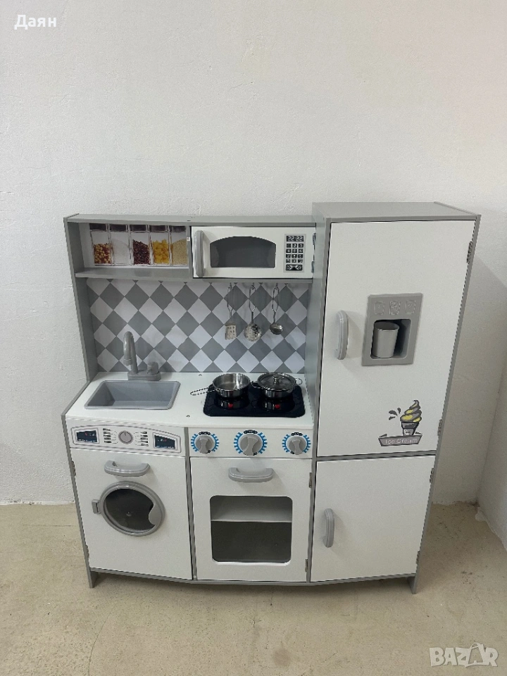 Тази ултрамодерна кухня за игра разполага с мивка със смесител, пералня, фурна, микровълнова печка, ледогенератор и готварска печка, позволявайки на децата да се потопят в разнообразни кулинарни сценарии. В комплекта са включени още тенджера, тиган, чаша, 2 кубчета лед и 3 кухненски прибора за още по-реалистична игра.