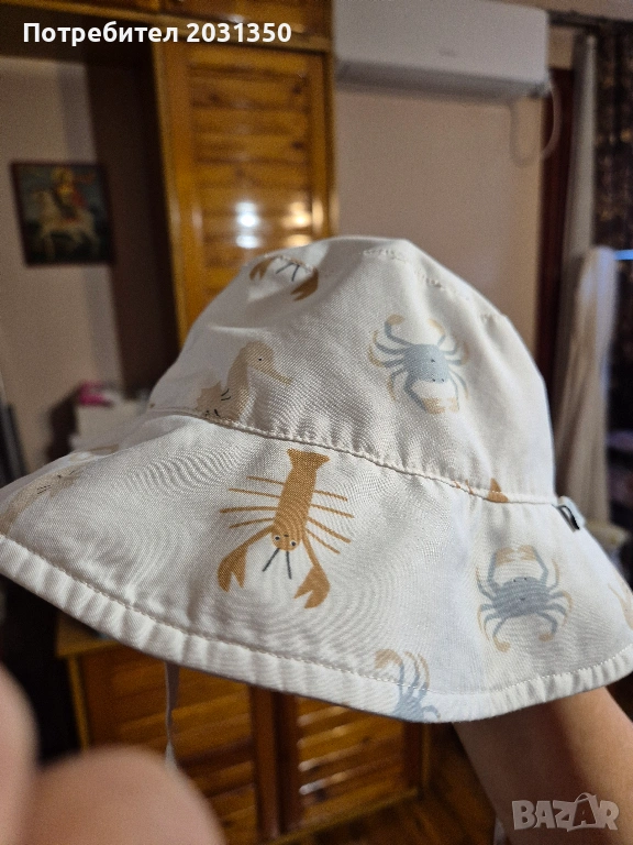 Шапката е в прекрасно състояние. С периферия е и е изключително удобна. Памучна е и има връзки.