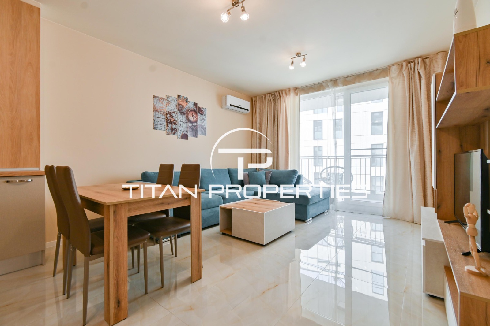 Титан Пропъртис - офис Младост с радост предлага на Вашето внимание двустаен апартамент под наем в жк. Кръстова вада. Жилището с площ от 80 кв.м. е разположено на 3-ти етаж в нова пететажна сграда. Разпределението включва хол с кухненски бокс, спалня, баня с тоалетна и тераса. Апартаментът е обзаведен, оборудван и се отоплява на газ, разполага и с климатик. Възможност за наемане на паркомясто.