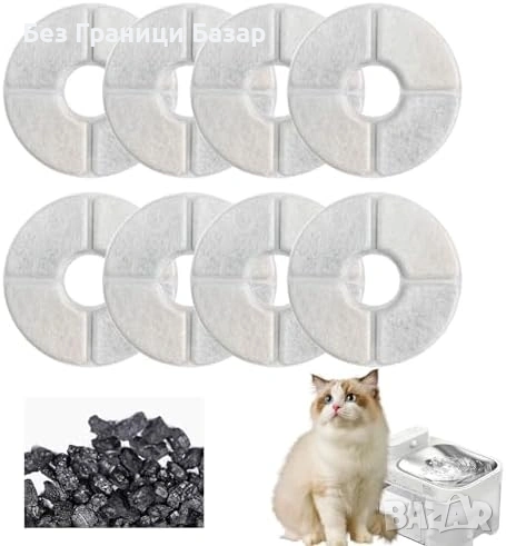 Нови Кръгли филтри за фонтан/поилка 2.5L 12 броя тройна филтрация котка