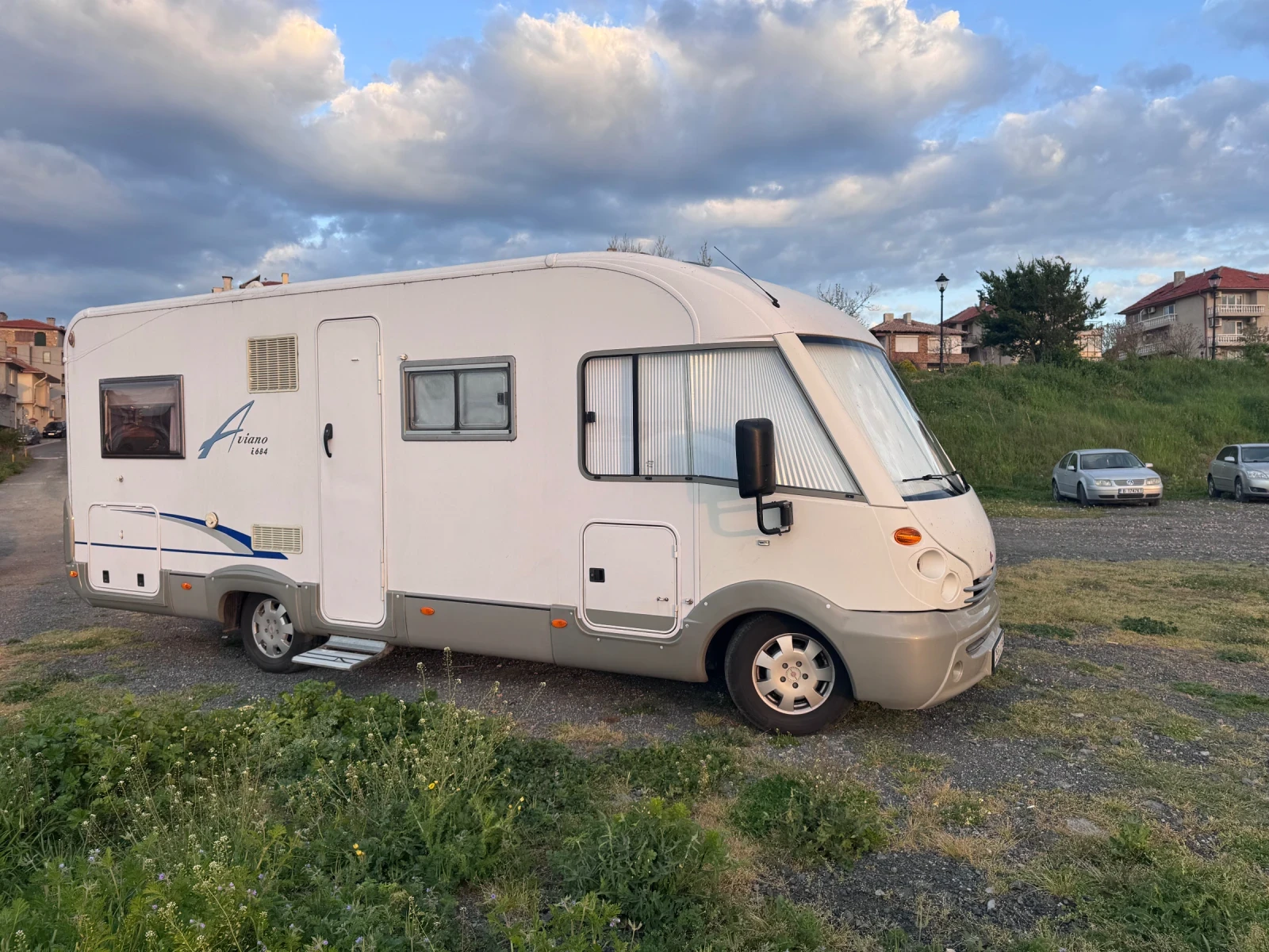 Продава се кемпер Burstner Aviano 690 - пълен интеграл. Дата на първа регистрация - Юни 2006 г. Дължина 6, 90 м. Тегло - 3160 кг. Пробег 135 000 км. Брой пътнически места - 3+1, но могат да се возят 5 души. Брой спални места - 5. Френска спалня за двама души, падащо легло за двама души, седяща група трансформираща се в легло за един възрастен или две деца. Обръщащи се седалки. Работещи щори и комарници на всички прозорци, лед осветление, три газови котлона, хладилник с голяма камера, сателитна чиния с телевизор, камера за задно виждане, която може да предава в движение. Газов бойлер и отопление Truma. Солар с инвертор и контролер, бутон в кабината за подаване на 220 v без външно захранване. Подменени оловни акумулатори за каравана част с 4 бр. литиеви батерии с обща мощност 4 kW/h. Бърза връзка вода и ток, багажник за две колела, фабрични стабилизатори. Резервоар за чиста вода - 100 л. Отопляем резервоар за отпадна вода - 100 л. Климатик към двигателя и мобилен климатик вкл. в цената. Двигател 2, 8 d, 128 к. с. и ходова част на FIAT. Здраво окачване и ходова част с оригинални части. Темпомат, който се активира от волана. Покривно покритие с корабна боя, която дава голяма изолация от вода и градушка. Изключително запазен интериор, без никакви течове и миризми. Дребни забележки по тапицерия на седалки и по броните отвън. Включени в цената навигация за кемпери на Garmin и частично къмпинг оборудване. Внесен от Швейцария на собствен ход през Юни 2024 г. Държан на охраняем покрит паркинг, когато не се ползва. С гражданска отговорност и винетка до Юли 2026 г. Продава се, защото не се ползва достатъчно често.
