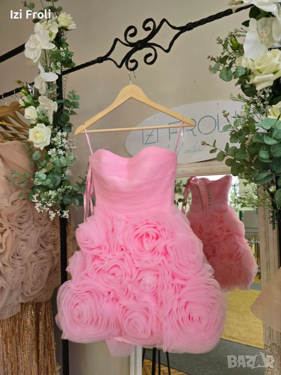 Къса рокля с женствен силует и модерно излъчване. Подходяща за парти и специални поводи.