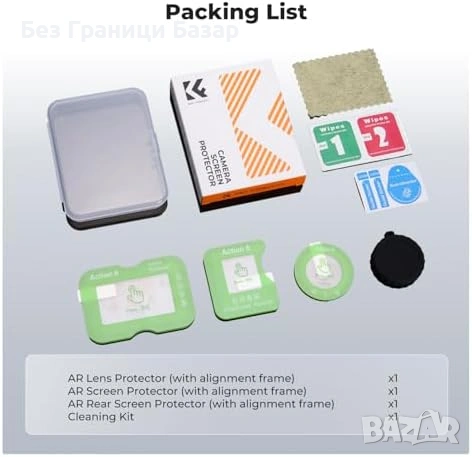 Нов K&F AR протектор стъкло 9H за DJI Osmo Action 6 екран + обектив