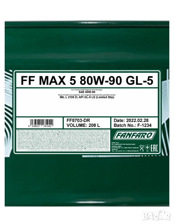 Трансмисионно Масло FANFARO MAX 5 80W-90 GL-5 208л.