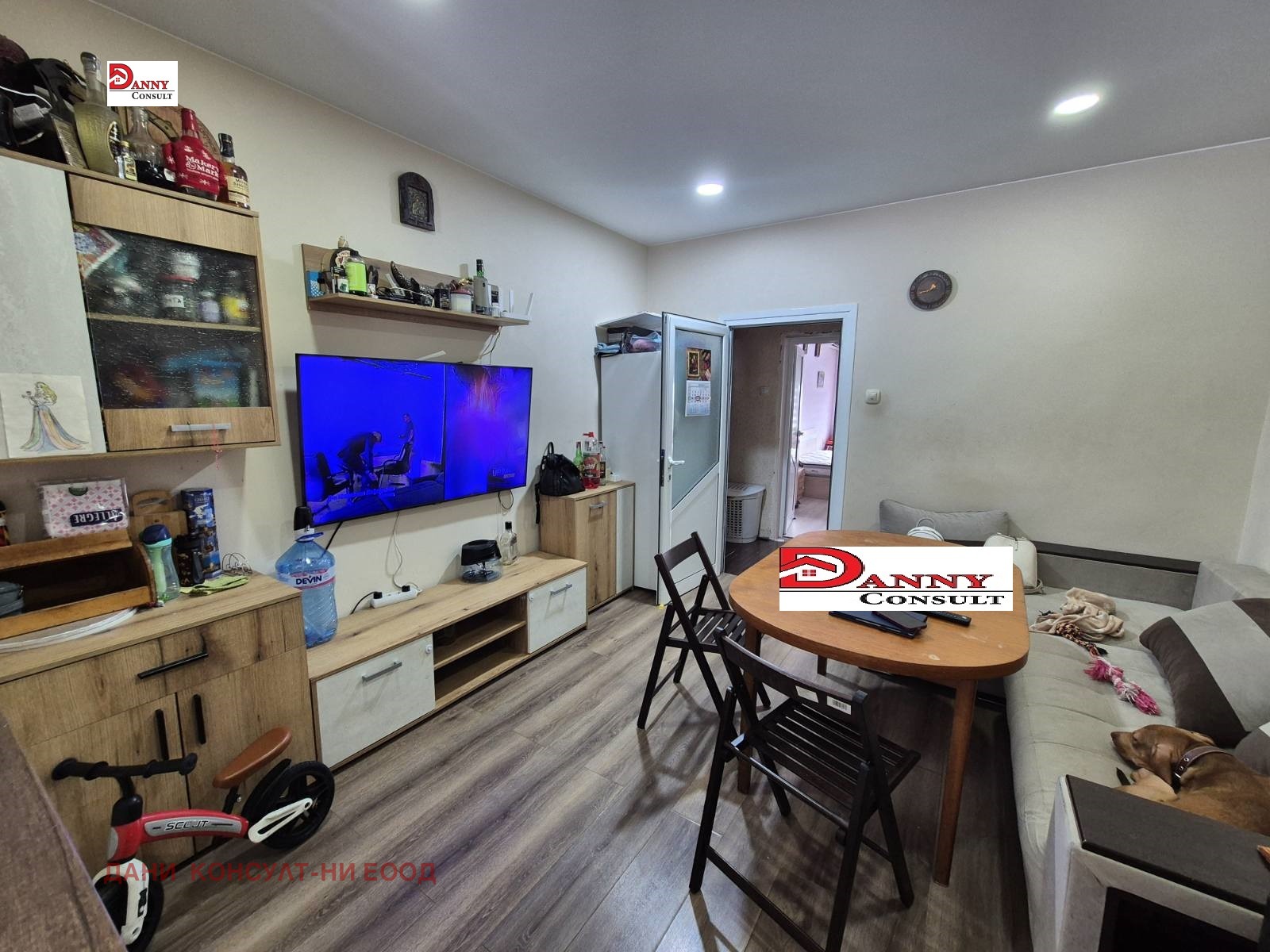 Агенция за недвижими имоти ДАНИ КОНСУЛТ предлага за продажба двустаен апартамент в един от най-спокойните квартали на гр. Велико Търново- кв. Чолаковци . Жилището е със ЗП 60 кв.м., панел, изложение север/юг, на първи жилищен етаж /над мази/ и има следното разпределение: коридор, трапезария с кухненска част, две спални, баня, тоалeтна, тераса и килер. Към имота има прилежащо избено помещение със ЗП 3.13 кв.м. Апартаментът е саниран /вътрешна и външна изолация/, сменени ВИК и ел. инсталации, PVC дограма, нови вътрешни врати, блиндирана входна врата, външни ролетни щори с ел. управление, подово покритие- ламинат и теракот. Продава се във вида от снимките. с цялото обзавеждане и оборудване /без хладилник и фризер/. Отоплението и охлаждането са решени с 3 броя климатици. Жилището се намира на тиха и спокойна улица, в близост до автобусна спирка, магазини, аптека, училище, детска градина и др.