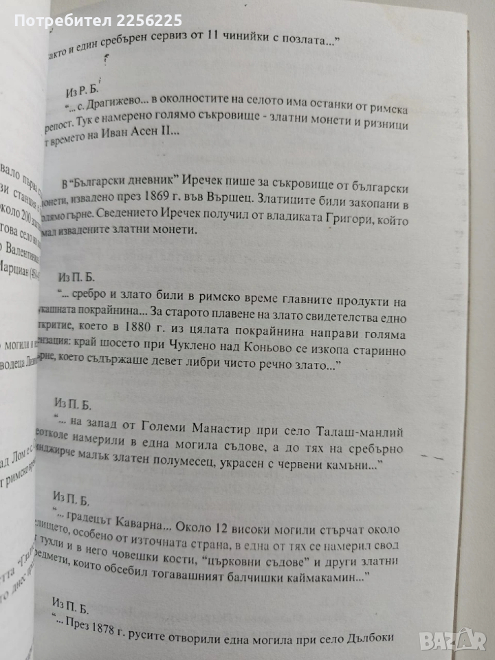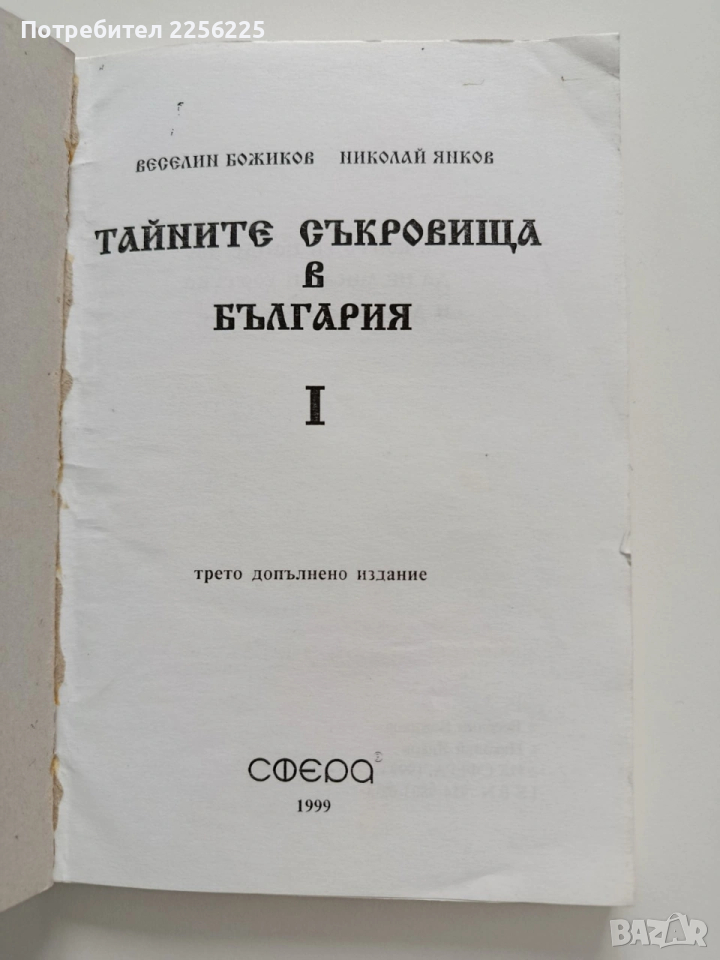 Предания,легенди, документи, автентични ръкописи, факти, уникални фотоси и др. за съкровищата в България. Меки корици ( книгата е подвързана)- 110 страници+ 32 страници със снимки на карти,пещери, входове на подземия,нишани и др.Добро състояние. Формат 210/150мм .Цената е без коментар.