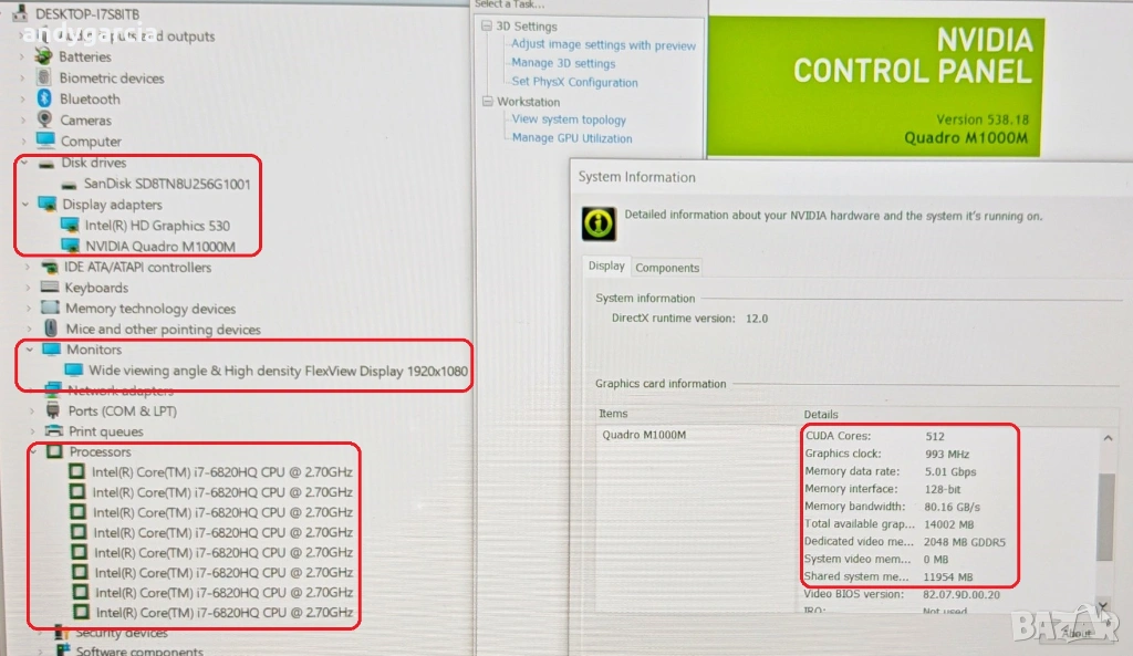 Видео карта : NVIDIA Quadro M1000 2GB GDDR5 128bit.
